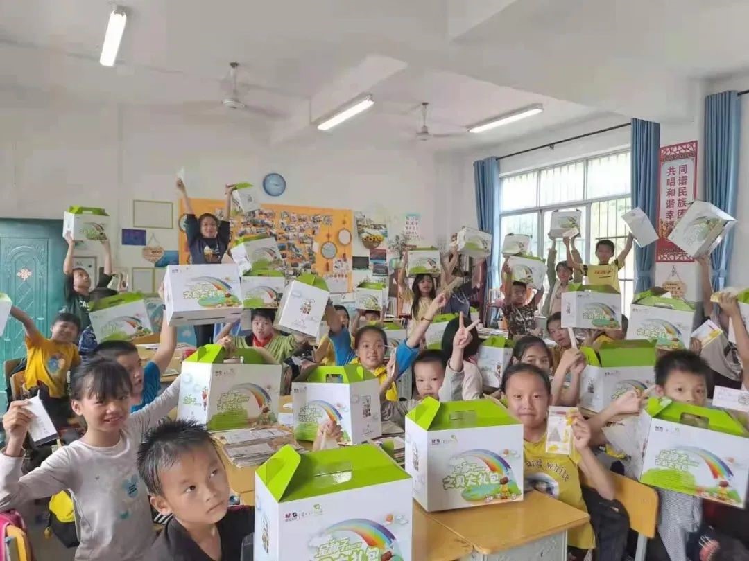 2018年开始浙江传媒学院结对帮扶了梅林村小学,今年儿童节杏彩体育电竞 彩虹公益与浙江学院一起向梅林村小学捐赠了200份金种子礼包,让孩子尽情的挥洒创意,画出心中的梦想。