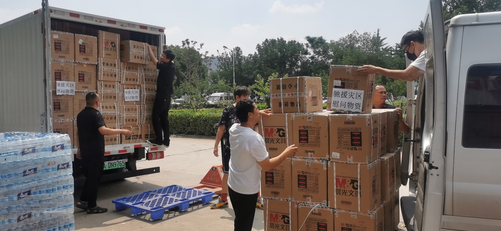 部分慰问物资从上海奉贤运出,感谢合作伙伴奉城安能物流免费运送救灾物资