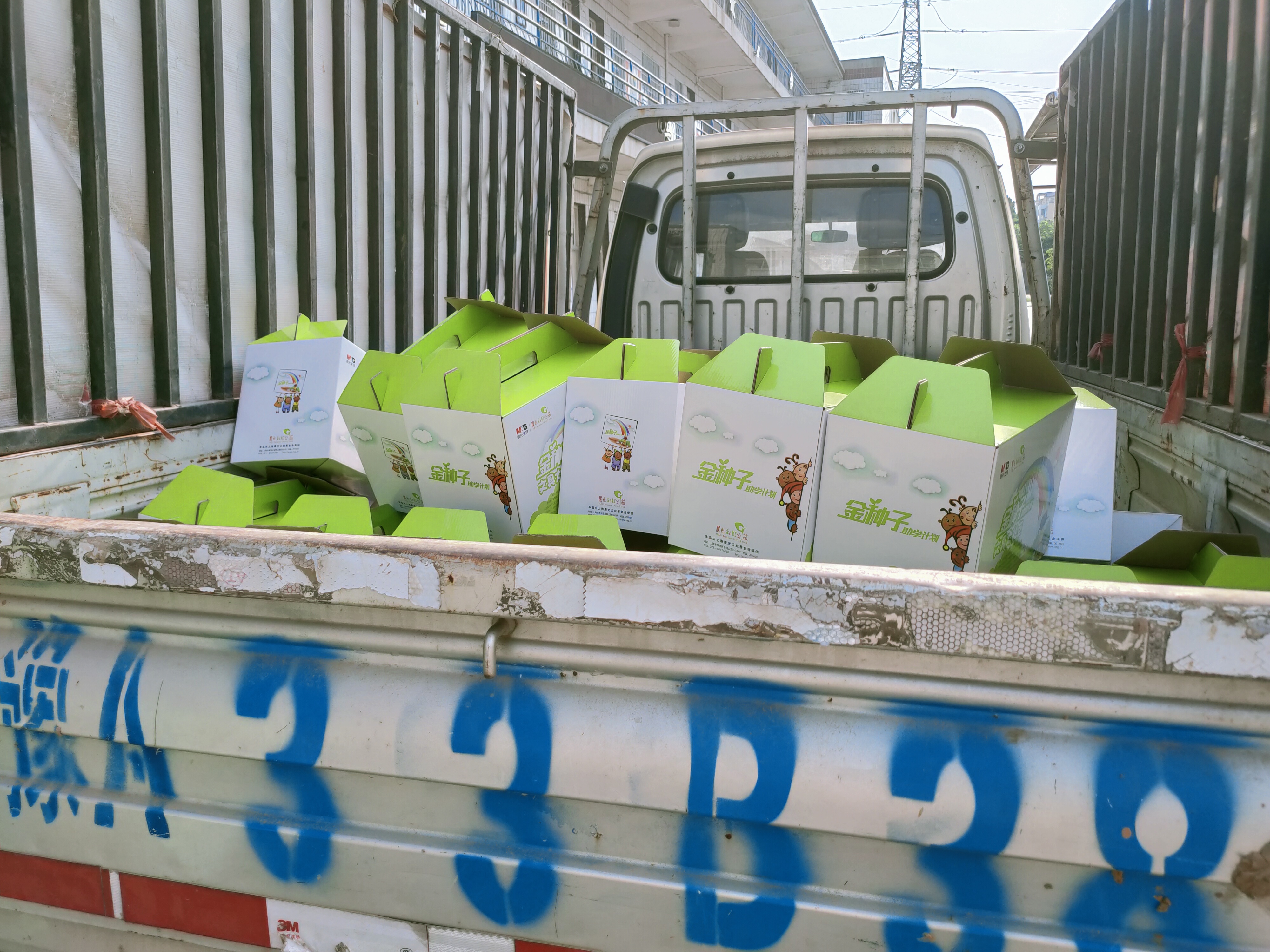 金种子礼包陆续发放到受灾民众家里、学校、福利院等地