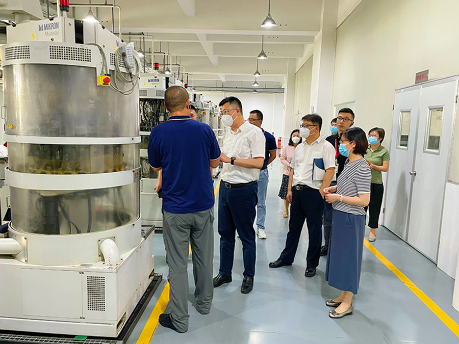 王虎院长一行在公司供应链资深副总裁付昌、技术中心副总裁姚鸿俊、法律事务总监潘高翔、对外公共事务总监金琪等陪同下,实地调研了杏彩体育电竞 奉贤工厂。