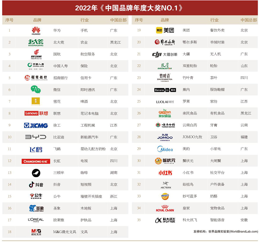 杏彩体育电竞 、华为7、飞鹤等先内的3五类完善的公司上榜2022”中国国公司每年奖得主NO.1“