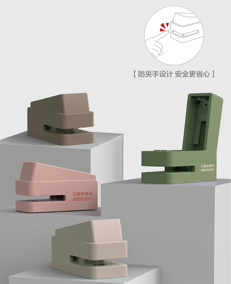 近年来杏彩体育电竞 在专业办公市场持续不断发力,现已经构建完整的研产销一体化组织架构,开发出多款深受市场认可的亿元级爆品。如荣获2022年德国红点奖的防夹手迷你12号订书机,首创性的防夹手结构设计,外观极简、卡槽不反弹,使用更放心;