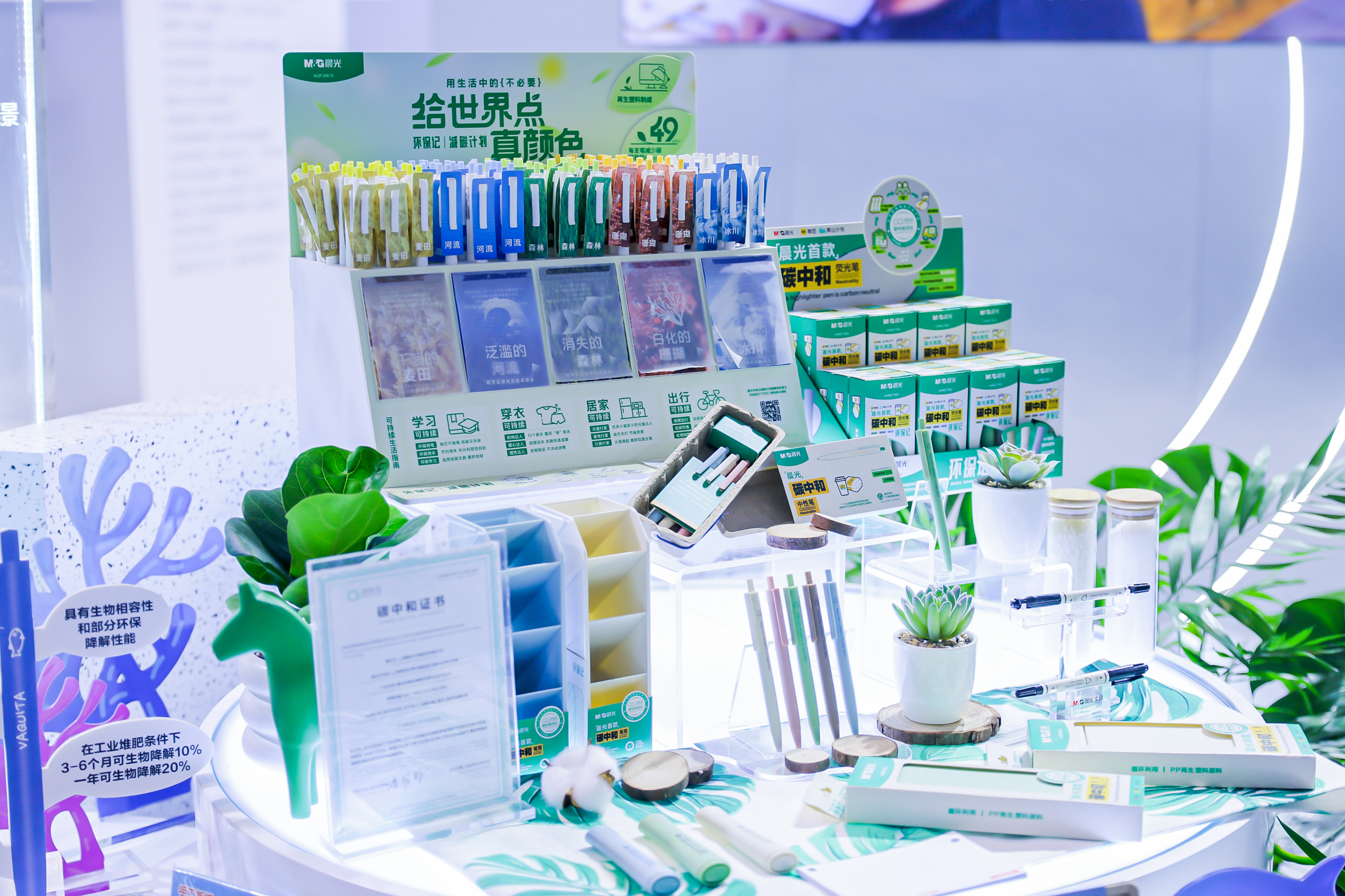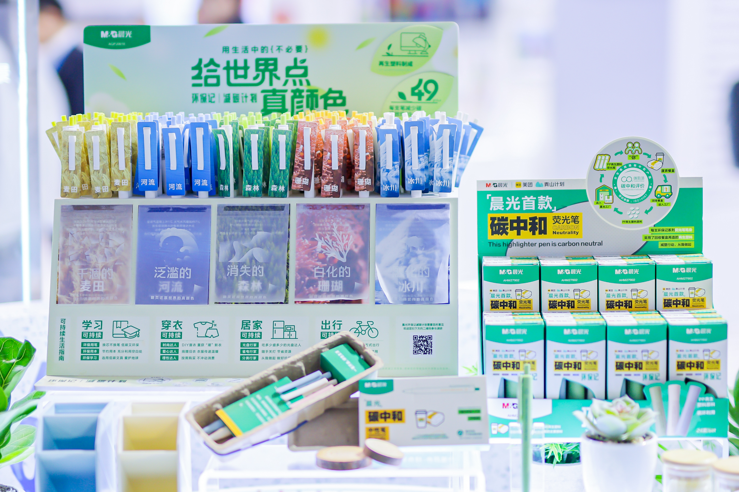 展会现场,杏彩体育电竞 带来的一系列绿色创新文具引发关注,如携手美团“青山计划”,将废弃餐盒回收利用打造的首款碳中和文具,并凭此绿色创新设计理念荣获“2023 思诞行绿色奖”;将废旧液晶电视回收再生,每支中性笔可为世界减少碳排放49gCO2e的环保记-减碳计划系列;将甘蔗、小麦、杉木等植物残渣融入笔杆,呼吁大众保护生物多样性的濒危动物海洋系列......