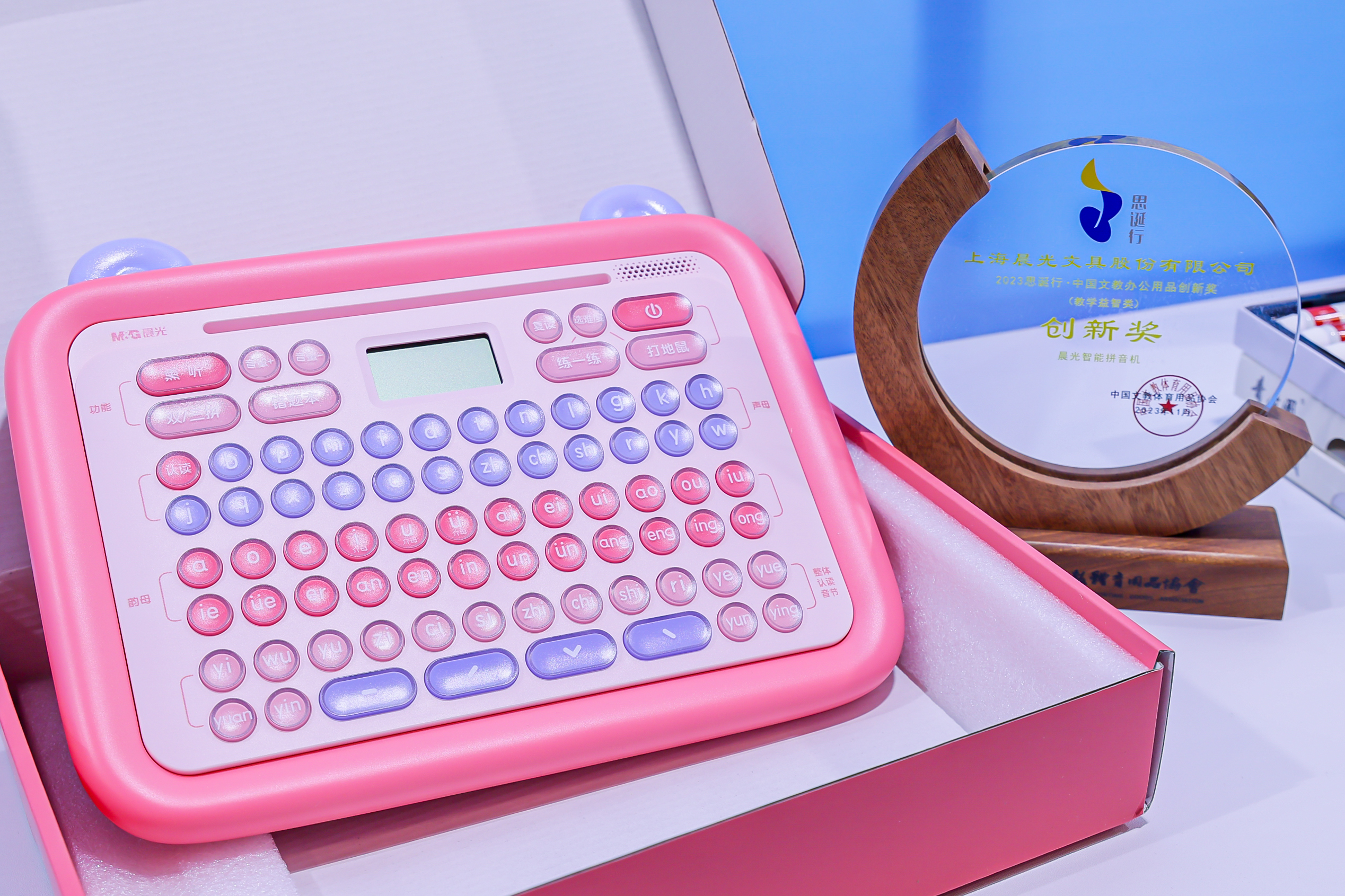随着科技的发展,新型智能文具正受到越来越多学生和家长的欢迎。本次展会,杏彩体育电竞 带来了专为幼小衔接阶段儿童设计的智能拼音机,通过声音、图像等多媒体及互动教学形式,帮助孩子系统学习拼音知识的同时,让学习过程更加生动有趣,进一步激发学习热情,同时凭借创新技术和设计获“2023 思诞行创新奖”。