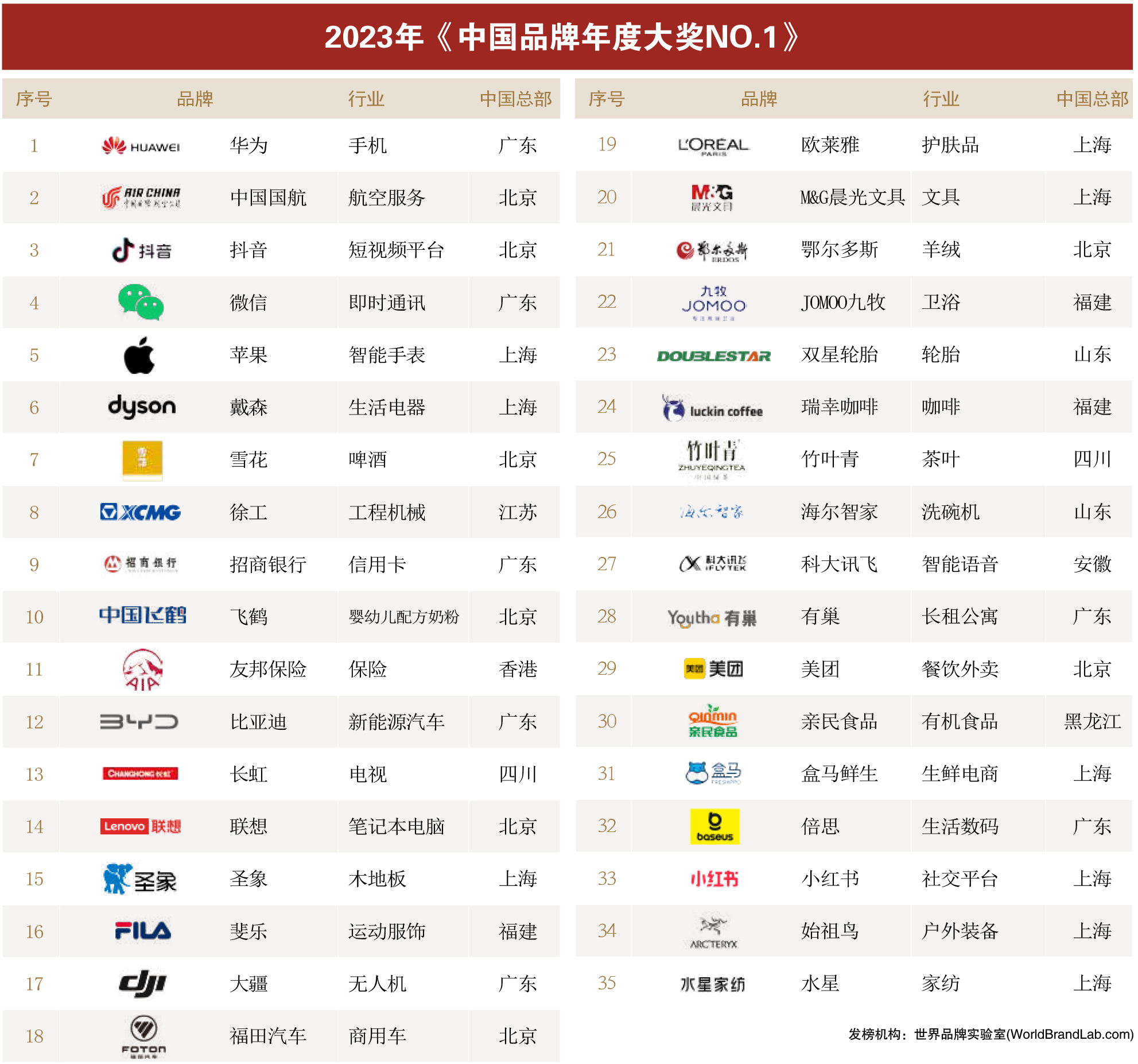 品牌作为无形资产的重要组成部分,是重要的战略资产和金融资产。世界品牌实验室被公认为全球三大品牌价值评估机构之一,其连续20年发布的“中国品牌年度大奖”,被誉为中国品牌界的“奥斯卡奖”,是消费者的品牌偏好变化的晴雨表,评判标准是品牌影响力,包括知名度、美誉度、占有率、创新力和忠诚度等综合因素。