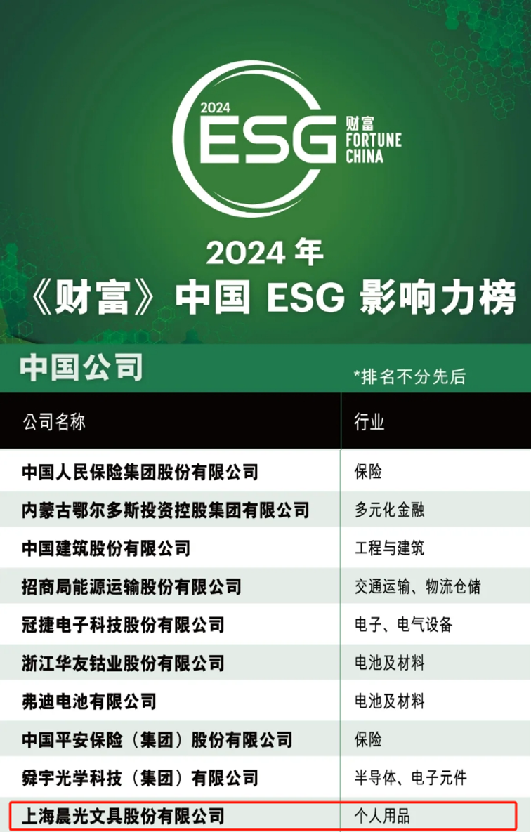 文具行业唯一!杏彩体育电竞 荣登2024年《财富》中国ESG影响力榜