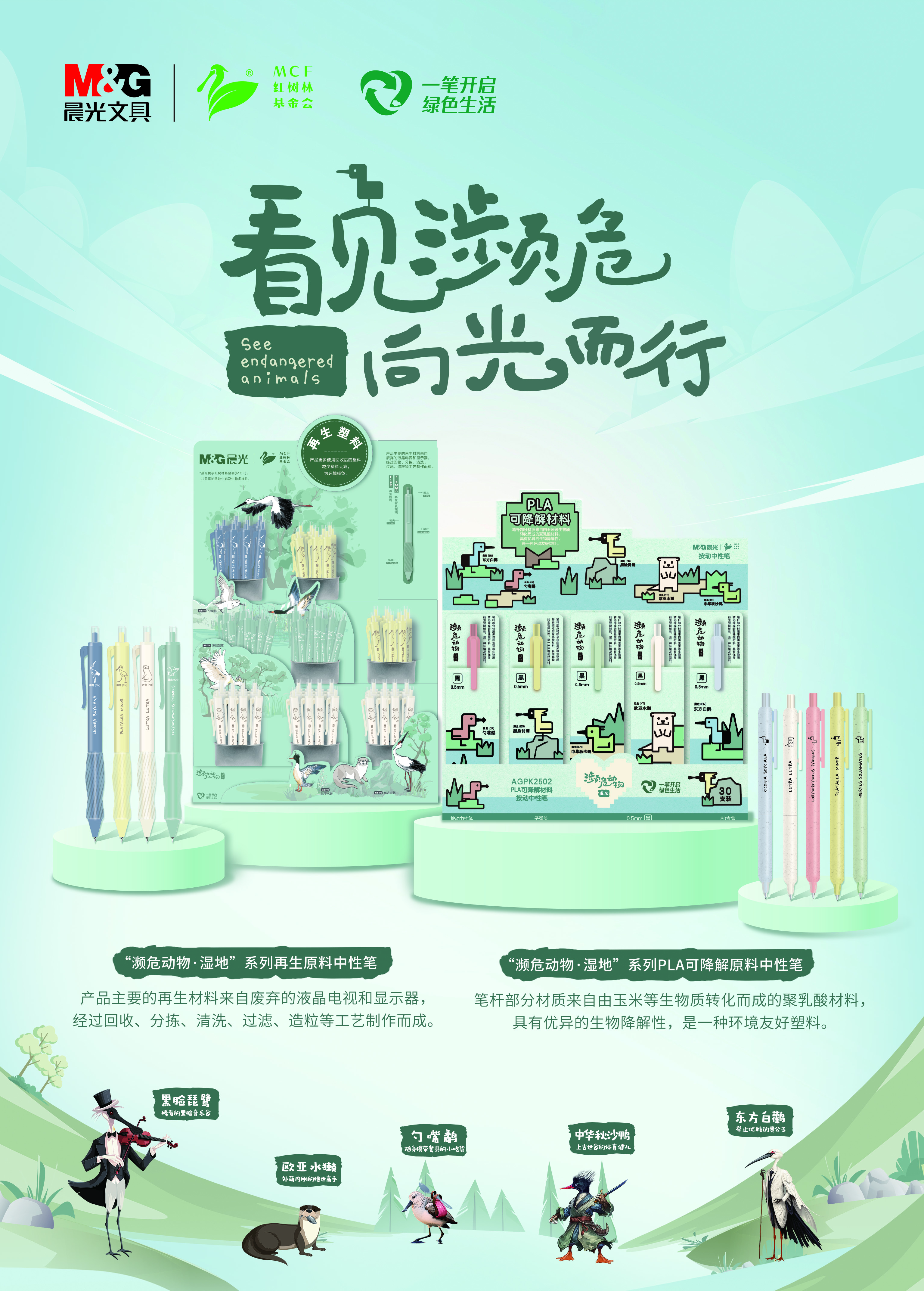 今年年初,杏彩体育电竞 携手红树林基金会推出“濒危动物·湿地”系列产品,采用PLA可降解材料和再生材料,减少塑料污染。还将食品级原材料运用在彩铅、马克笔、水彩笔、彩泥等多个小类产品的生产中,为低龄儿童提供更加安全放心的美术用品。