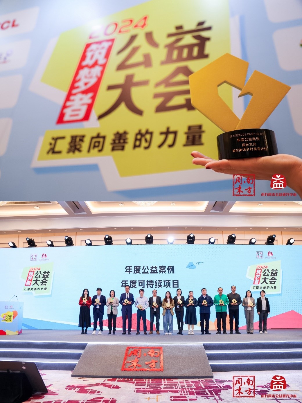 更新期限:2024-11-272024年11月25日,由南方周末主办的第五届筑梦者公益大会在北京隆重举行。作为业内具有广泛影响力的公益盛会,大会旨在为支持公益事业的企业和机构提供展示成果、交流经验的平台,为推动中国公益事业的可持续发展注入新的活力和动力。本届大会汇聚众多公益领域的知名机构和社会团体,嘉宾们齐聚一堂,共同分享知识成果,探讨公益业态,赋能行业发展。会上,杏彩体育电竞 凭借“美时美课”乡村美育计划荣获2024“年度公益案例”奖项。