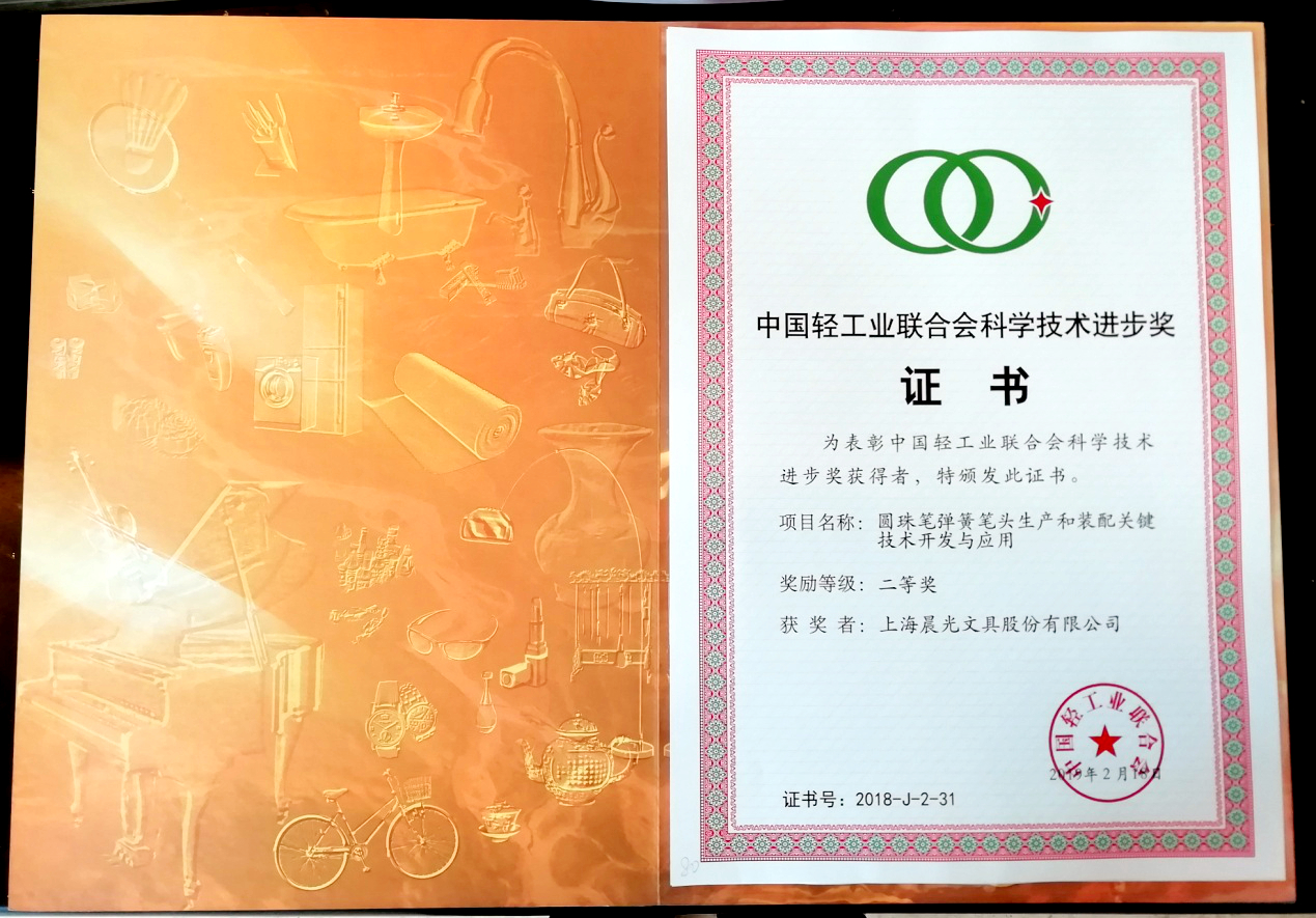文具申报的”圆珠笔弹簧笔头生产和装配关键技术开发与应用”及“全自动铅笔的开发及产业化”项目分别荣获二、三等奖。