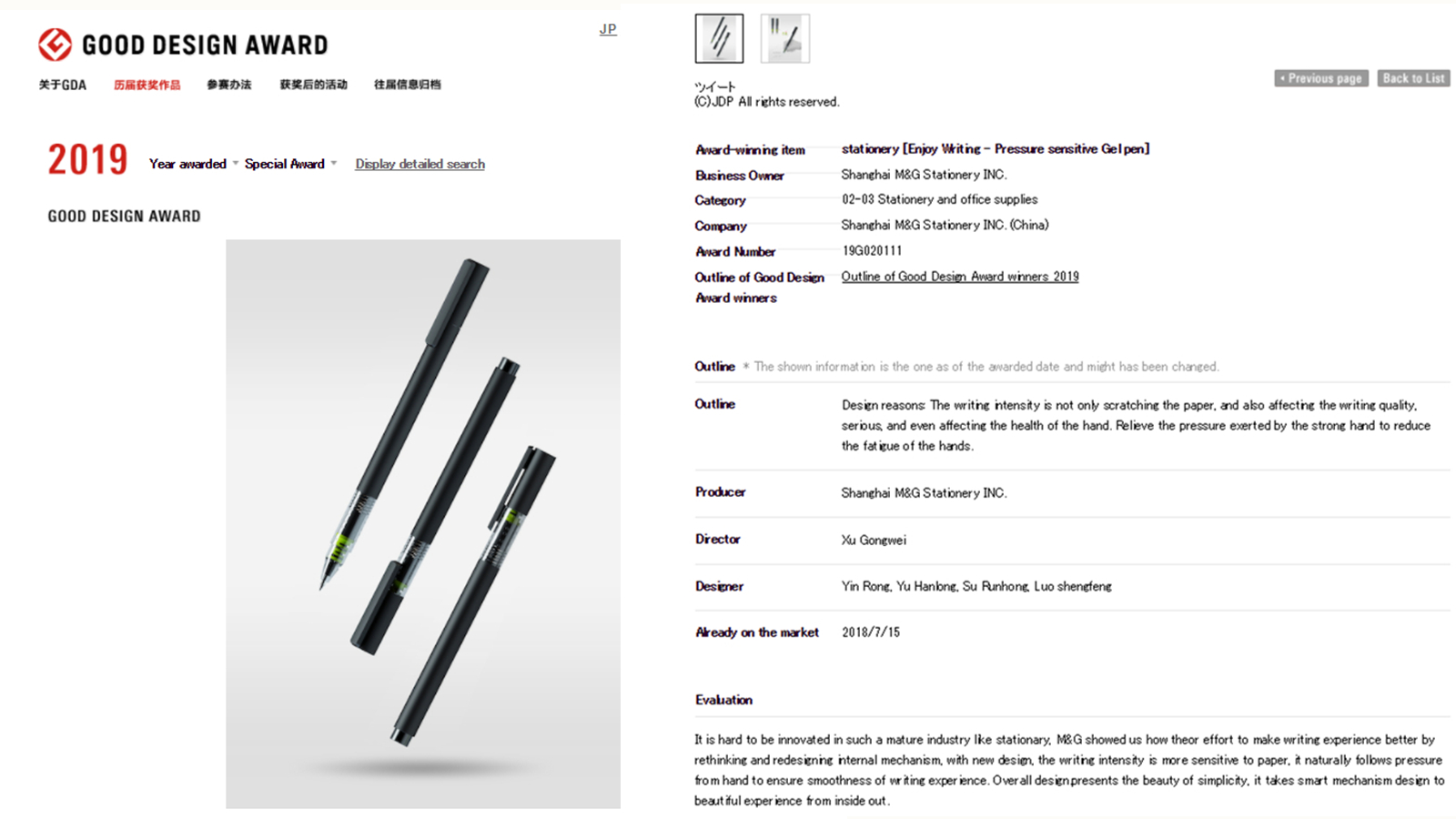 作为国内中性笔首例,杏彩体育电竞 文具斩获2019日本G-mark设计奖