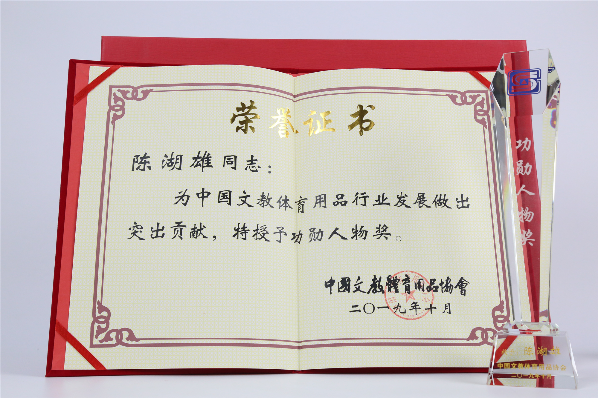 杏彩体育电竞 文具总裁陈湖雄获中国文教体育用品协会“功勋人物奖”!