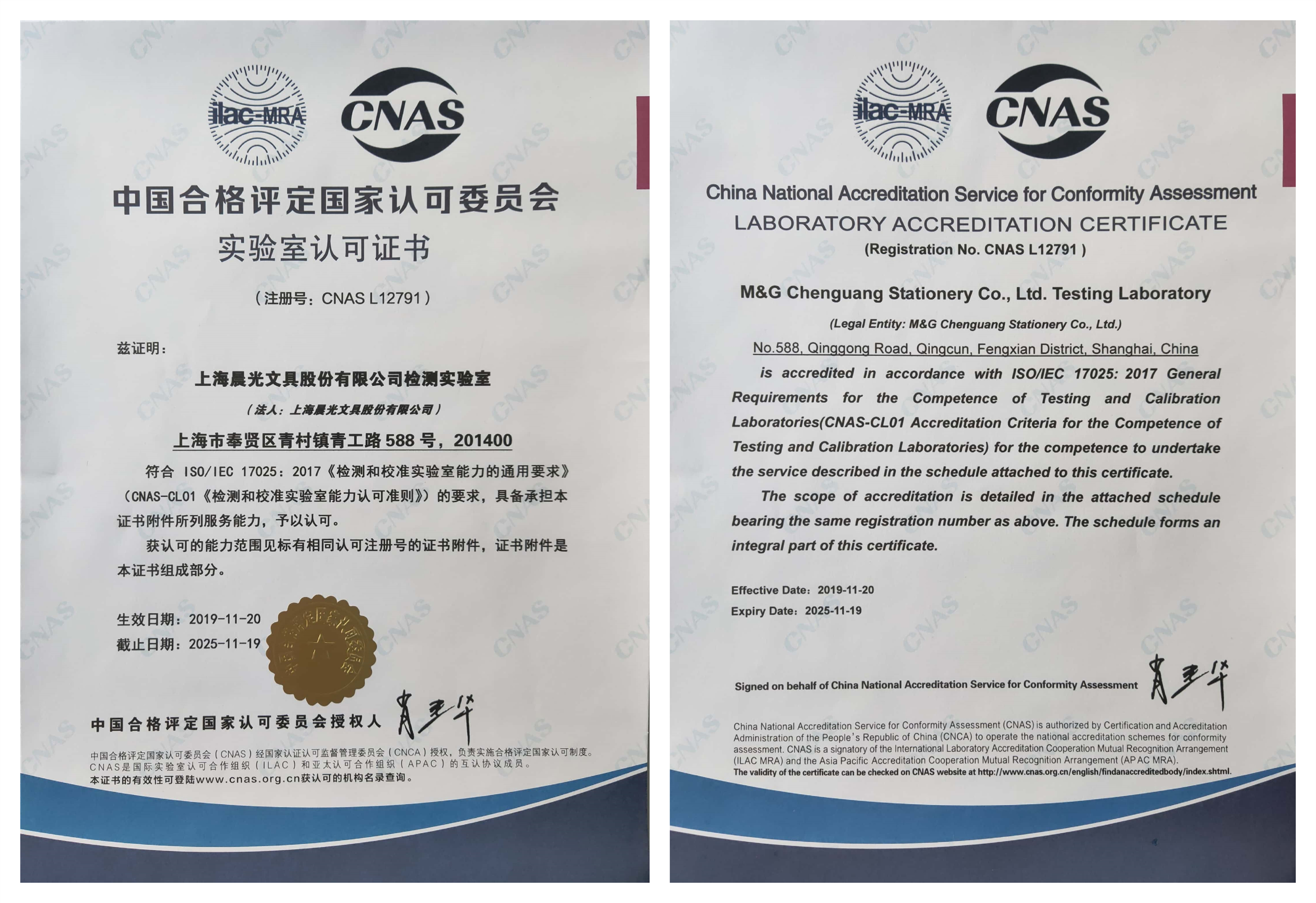 文具实验室检测能力、检测结果将获全球101个国家互认!CNAS全称为中国合格评定国家认可委员会,是我国目前唯一的、也是最权威的实验室评审机构,同时它也是认可审核时间最长、通过难度最大权威认证。