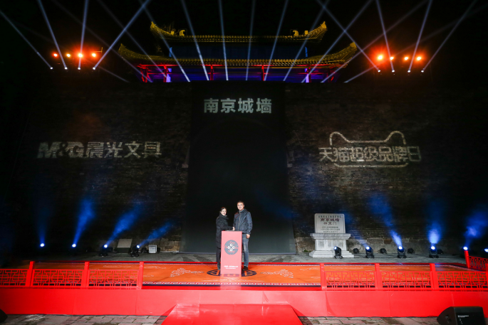 文具行业首个天猫超级品牌日,杏彩体育电竞 点亮金陵古城墙