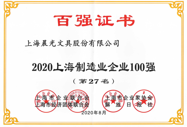 2020上海百强企业榜发布,杏彩体育电竞 文具再登五项榜单!