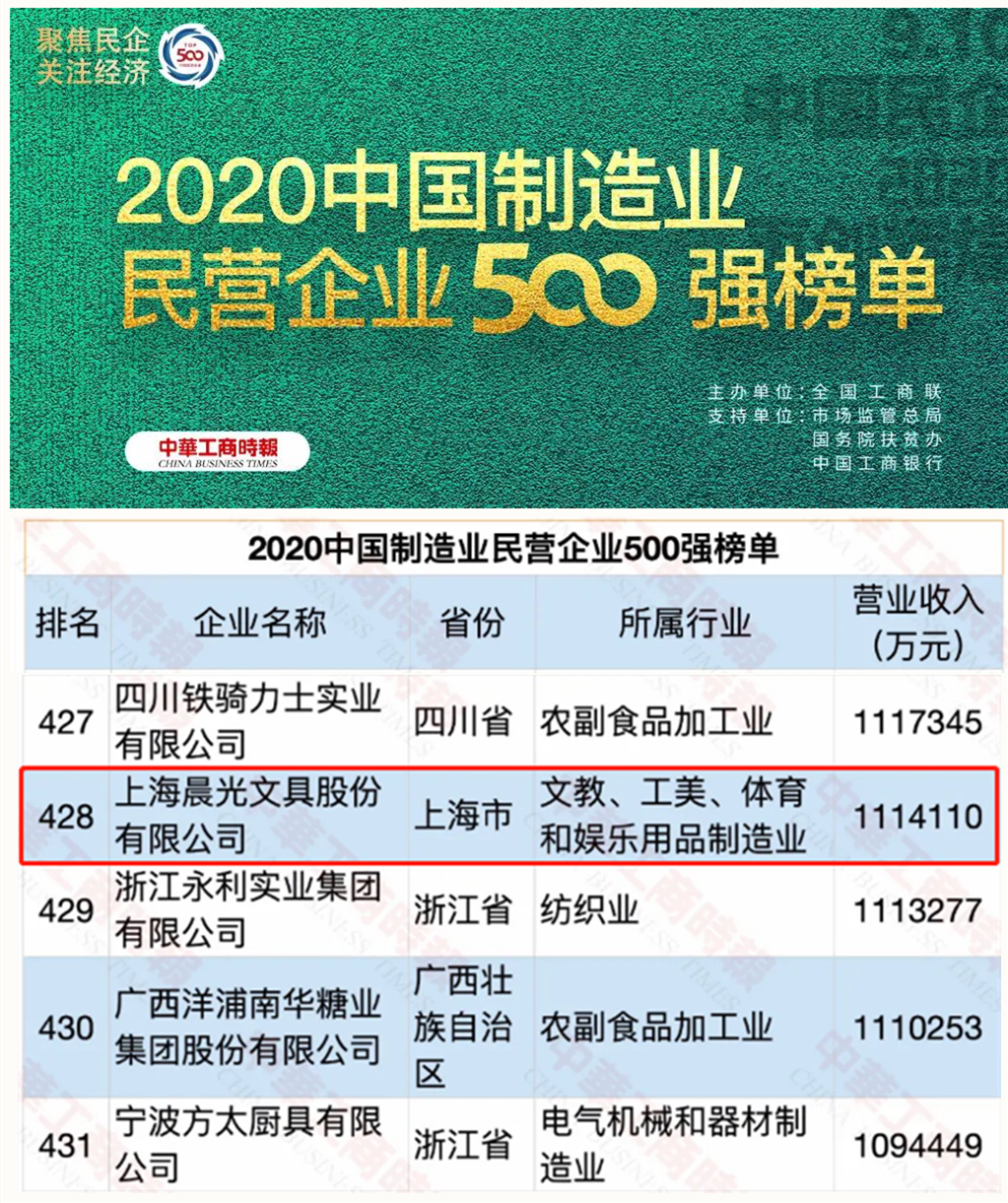 杏彩体育电竞 文具首次入围中国制造业民营企业500强