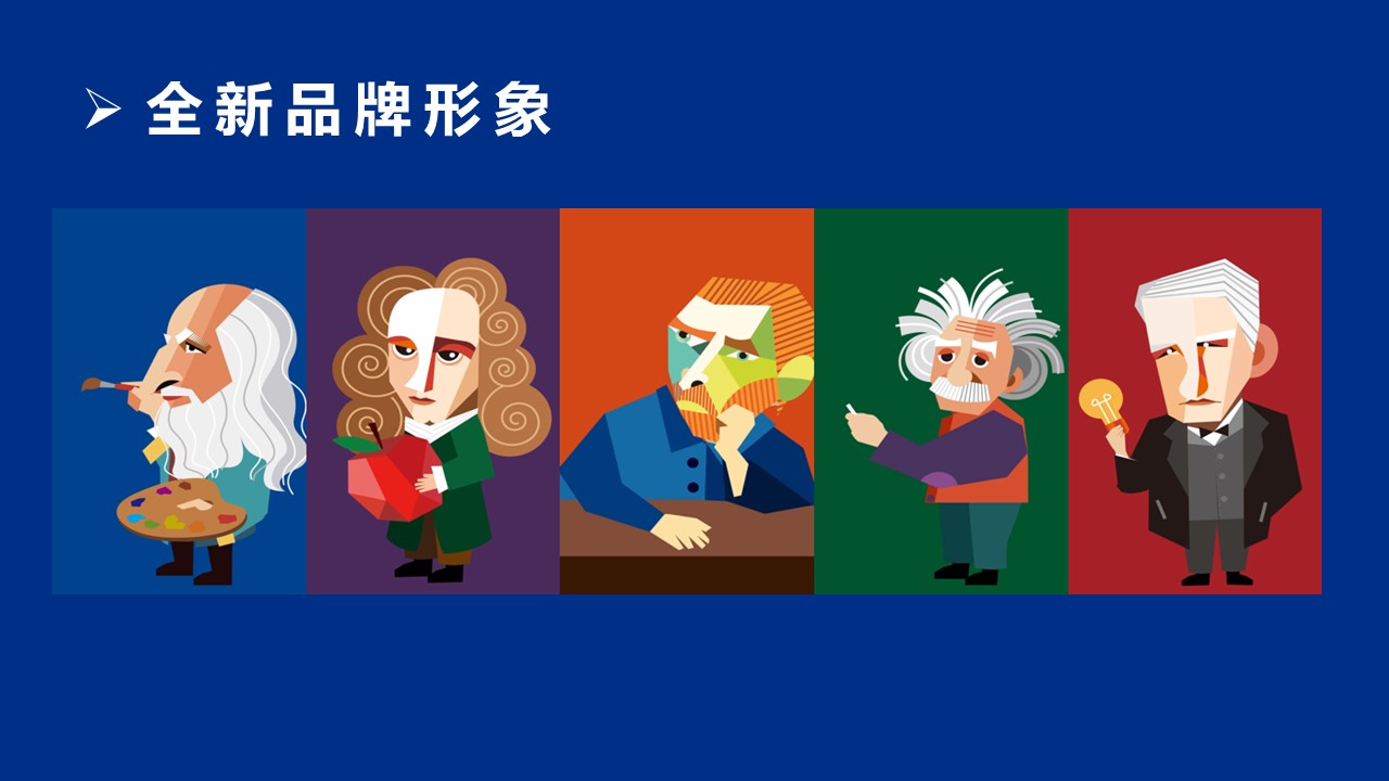 新款进行包安装修设计以达芬奇为代替、开启牛顿、梵高、爱迪生、爱因斯坦天才少年品牌代言,意喻着“自学的孩子最棒!”。